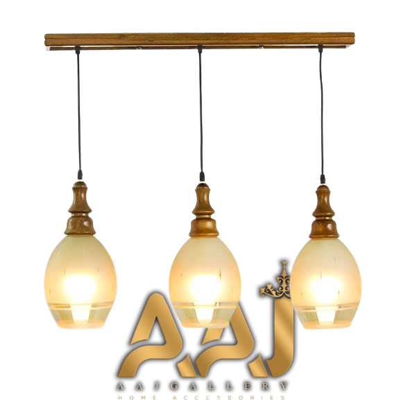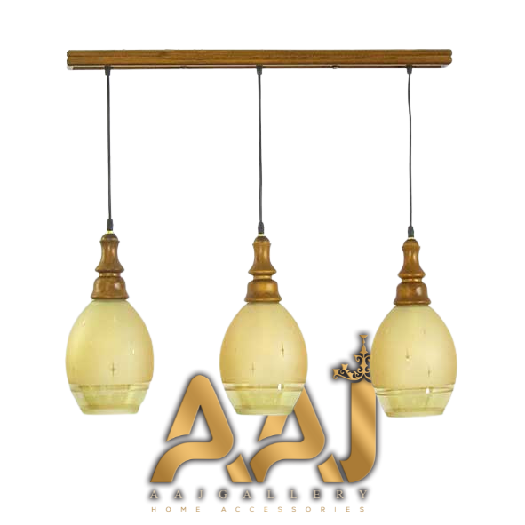 - لوستر آویز چوبی 3 شعله خطی السا | طراحی مدرن و منحصر به فرد