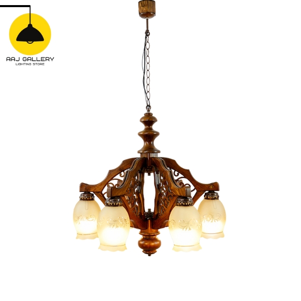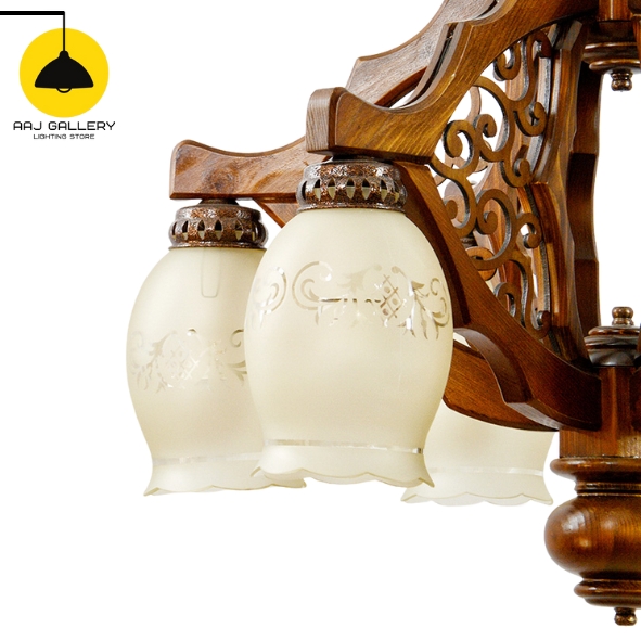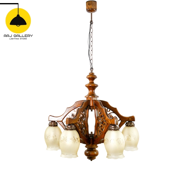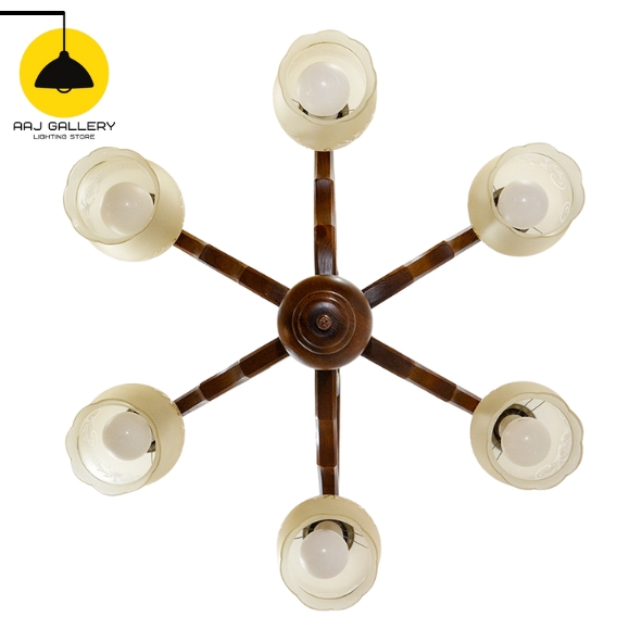 لوستر آویز چوبی شش شعله دارکار - مدل کلاسیک