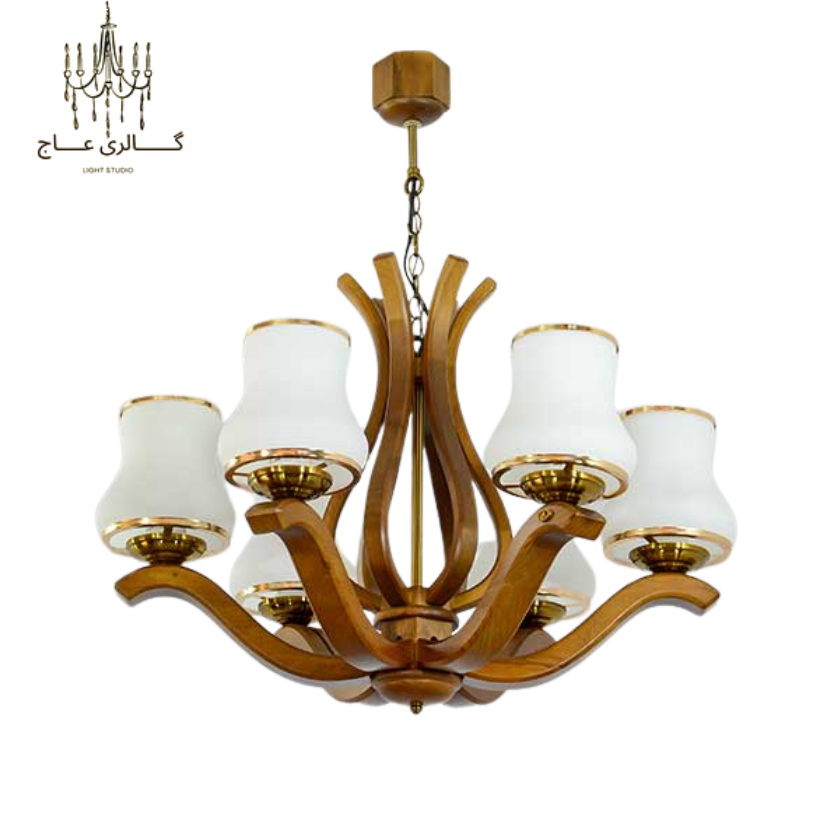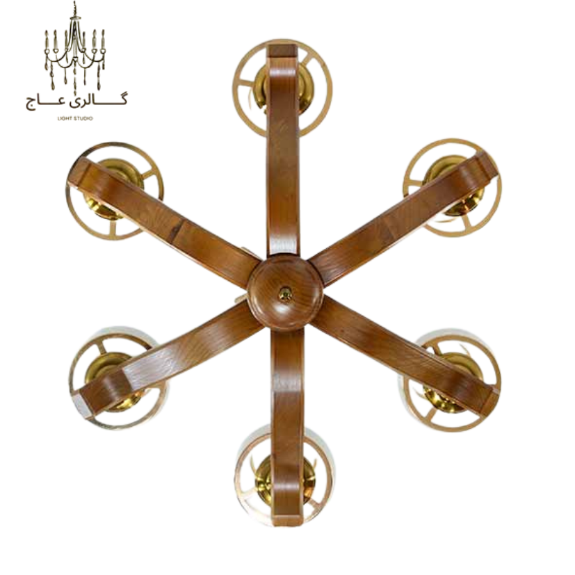 - طراحی منحصر به فرد و مدرن: ساختار چوبی این لوستر با شش بازو، حال و هوایی گرم و contemporaneous را به فضای شما هدیه میدهد.