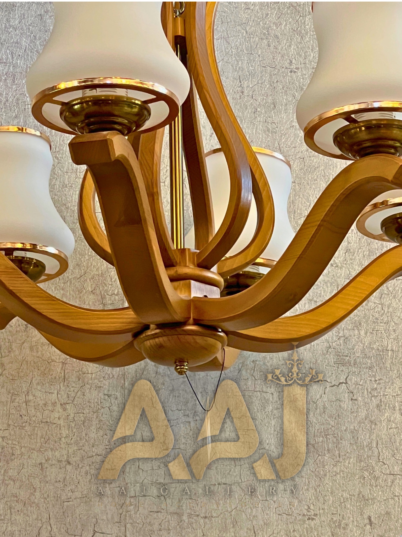 لوستر آویز چوبی 6 شعله هوران | جلوهای از طبیعت و elegance در دکوراسیون شما