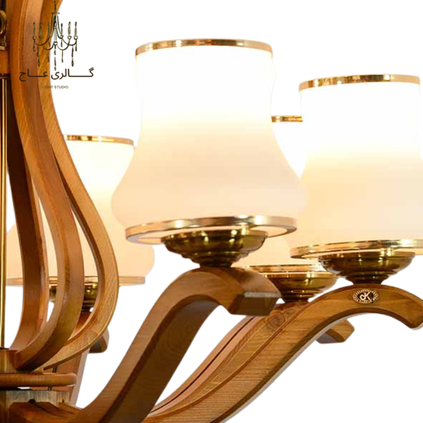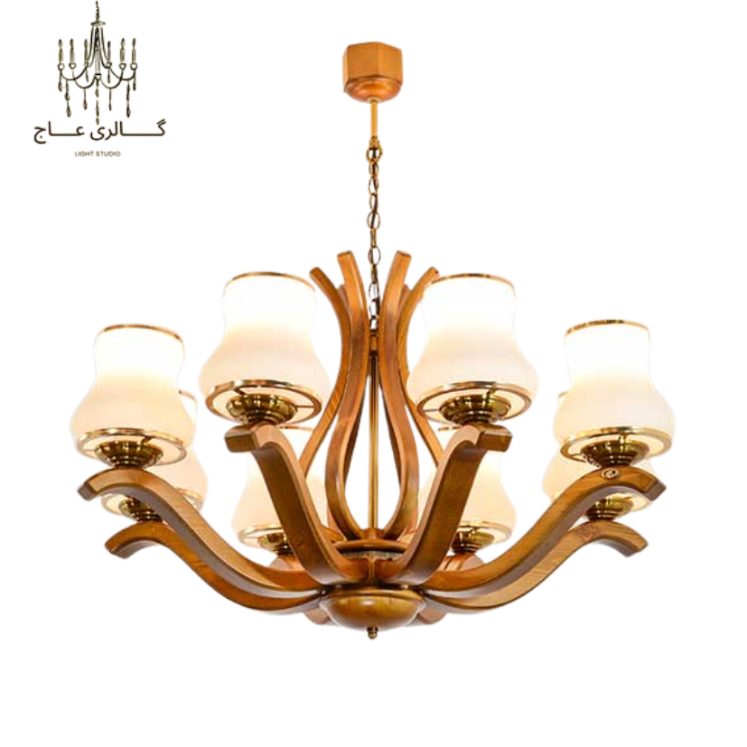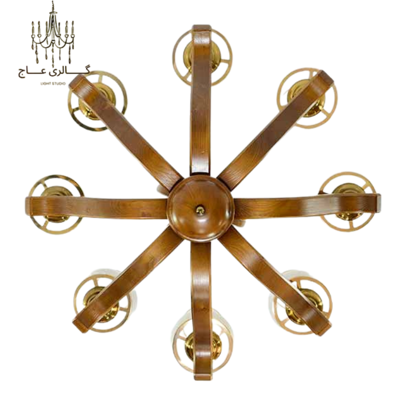 لوستر آویز چوبی 8 شعله هوران | تلفیق شکوه و نورپردازی حرفهای