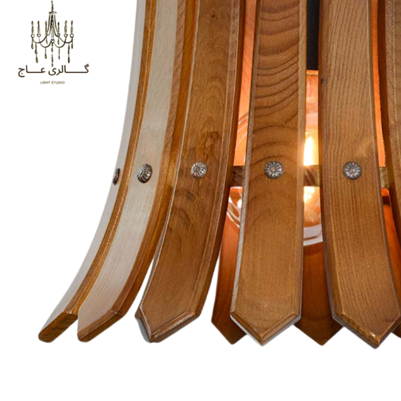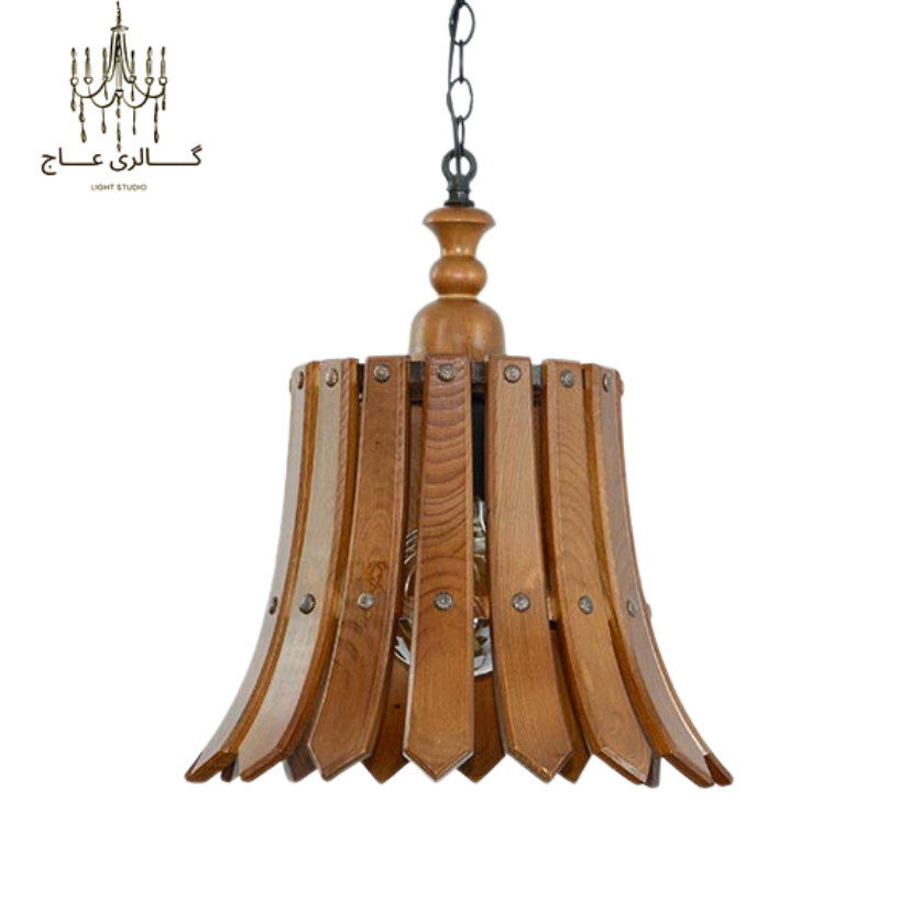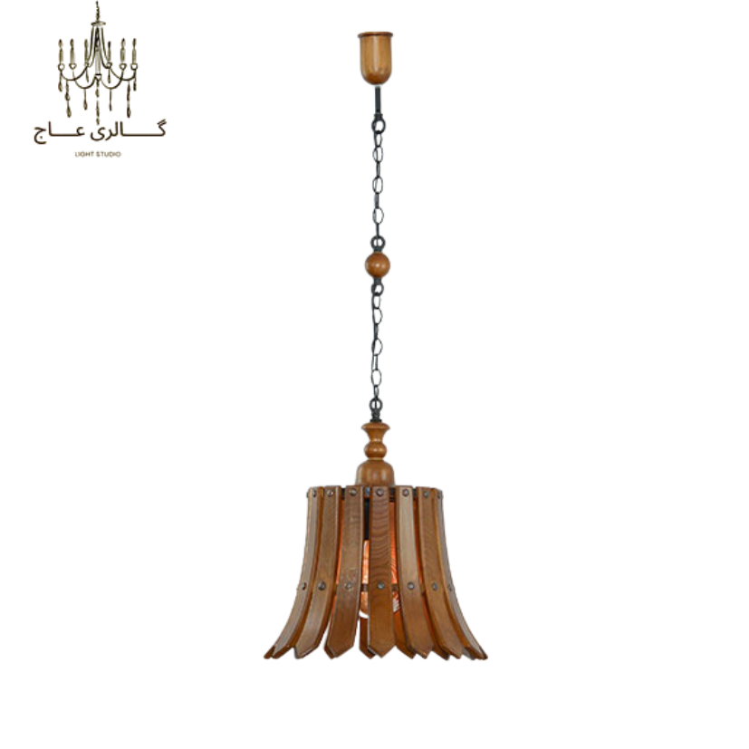 لوستر آویز تک شعله چوبی پرچین دارکار | تلفیق زیبایی و عملکرد در نورپردازی