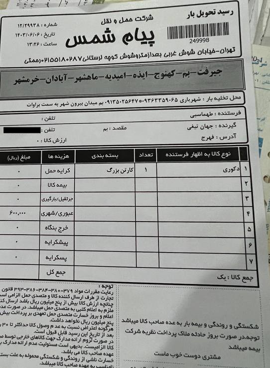 این بخش فعلاً بهصورت آزمایشی راهاندازی شده برای بارگزاری برخی از رسید های ارسالی