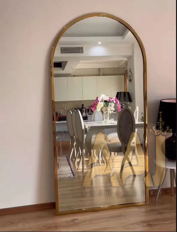 آینه قدی نسترن از فریم فلزی می باشد که این روزها بسیار مورد استقبال و جزو پرفروش های گالری عاج می باشد رنگ این مدل استاتیک با کیفیت و ضد خش می باشد .