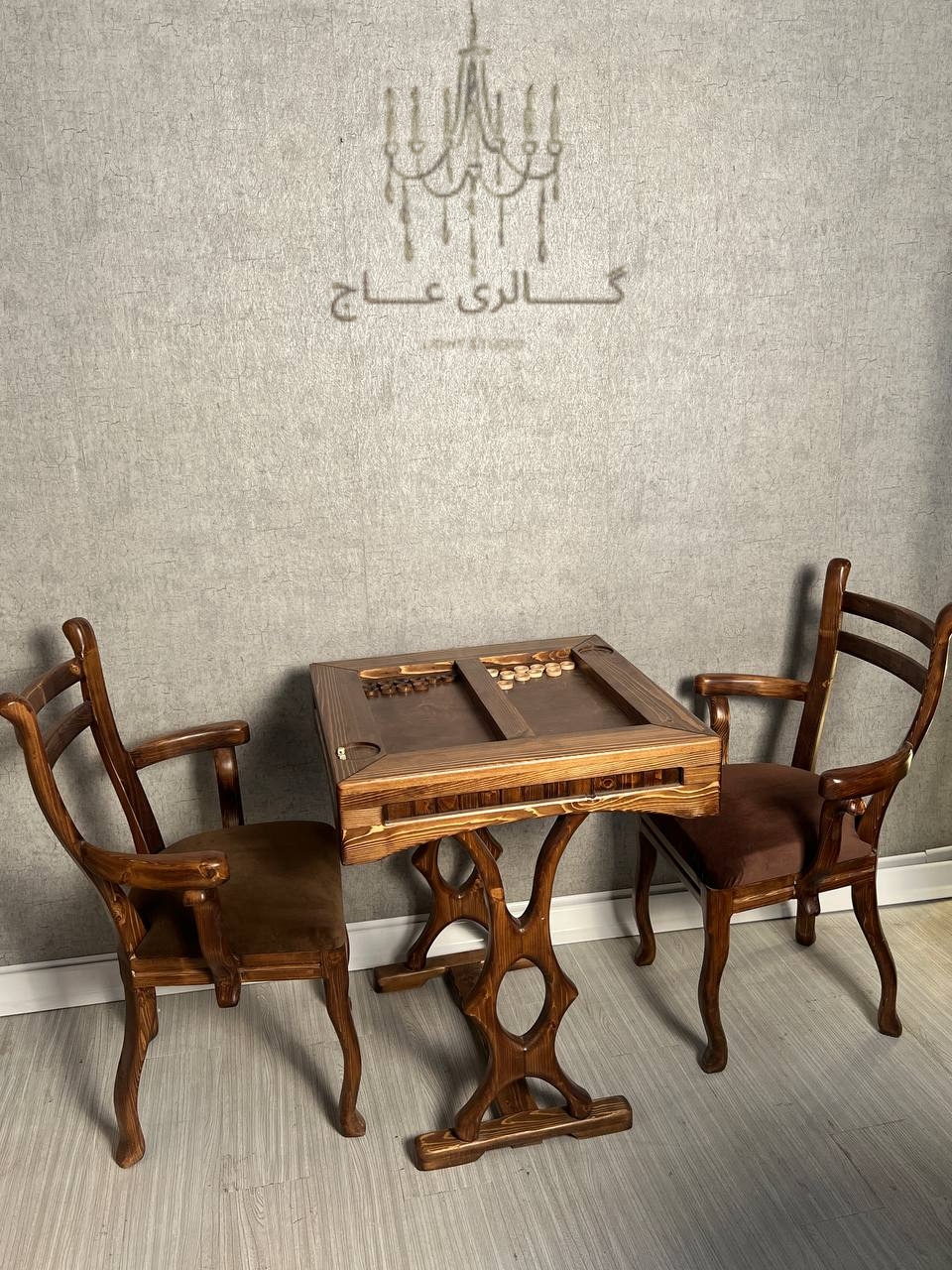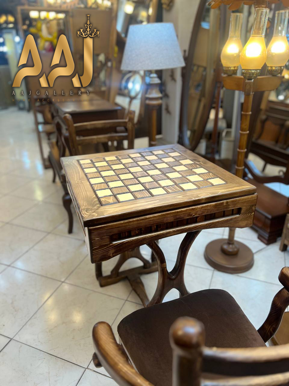میز تخته نرد و شطرنج چوبی روسی – همراه با دو صندلی چوبی