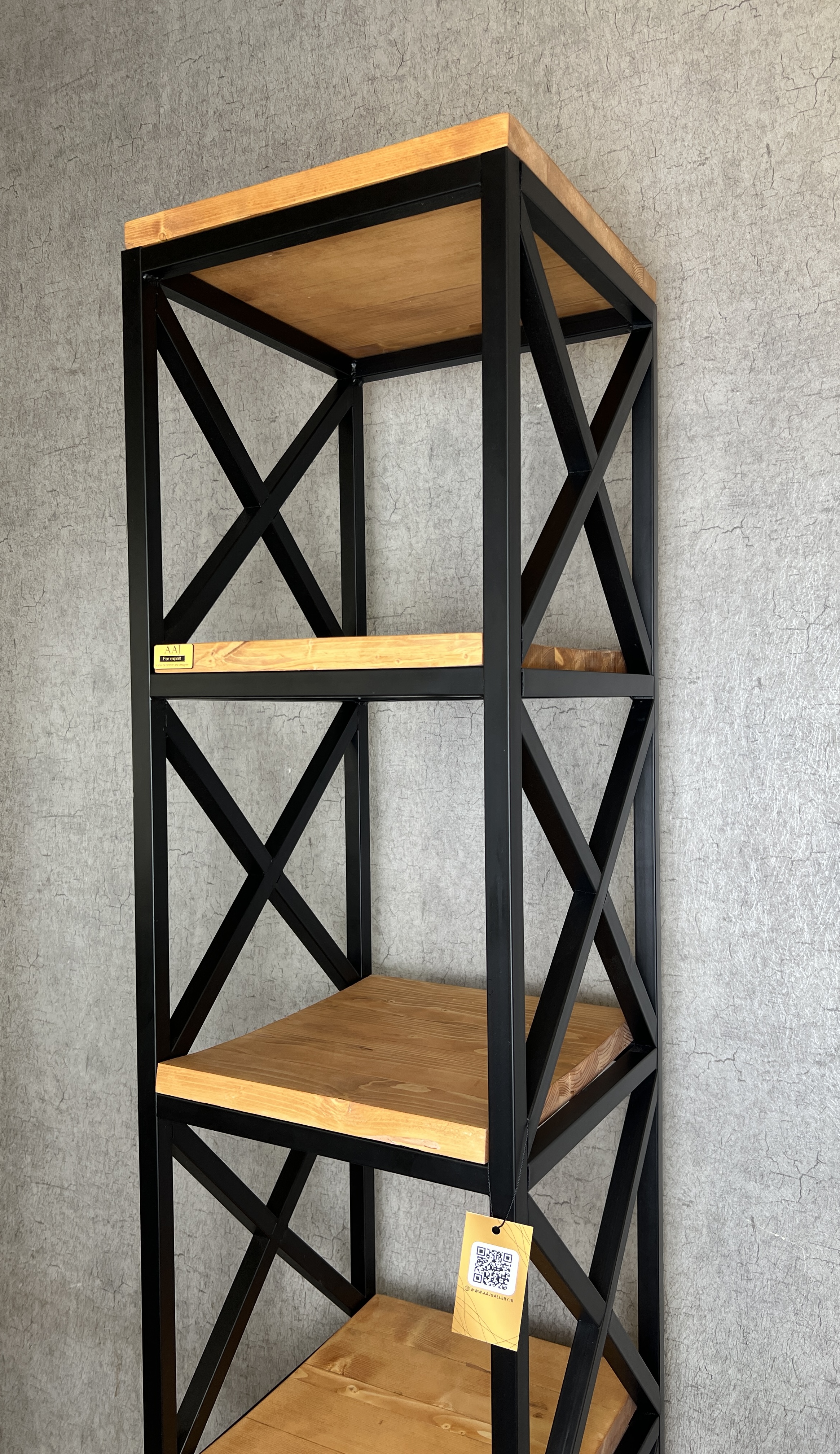 استند چوب فلز ۵ طبقه، از کارهای جدید عرضه شده در گالری عاج میباشد. محصولات چوب فلز تنوع گسترده ای در محصولات روشنایی دارند و شامل انواع لوستر، آویز و دیواری تک شعله میباشند.اما این مدل کتابخانه کاربردی و استند کنار سالنی به دلیل ترکیب چوب و فلز میتواند انتخاب مناسبی برای سبک های مختلف دکوراسیونی باشد. دکوراسیون نئو کلاسیک (به علت وجود فلز)، سبک روستیک (به علت وجود چوب)، مدرن (به علت ترکیب چوب و فلز) مورد استفاده قرار میگیرد. جنس چوب این محصول از چوب روس درجه یک و پخته شده میباشد که بهترین و با کیفیت ترین نوع چوب در تولید محصولات چوبی است و دلیل آن سختی و استحکام بسیار بالای این چوب است که باعث میشود در مقابل عواملی همچون گرما و سرما ، رطوبت و نفوذ حشرات و قارچ های چوب خوار کاملا ایمن باشد.