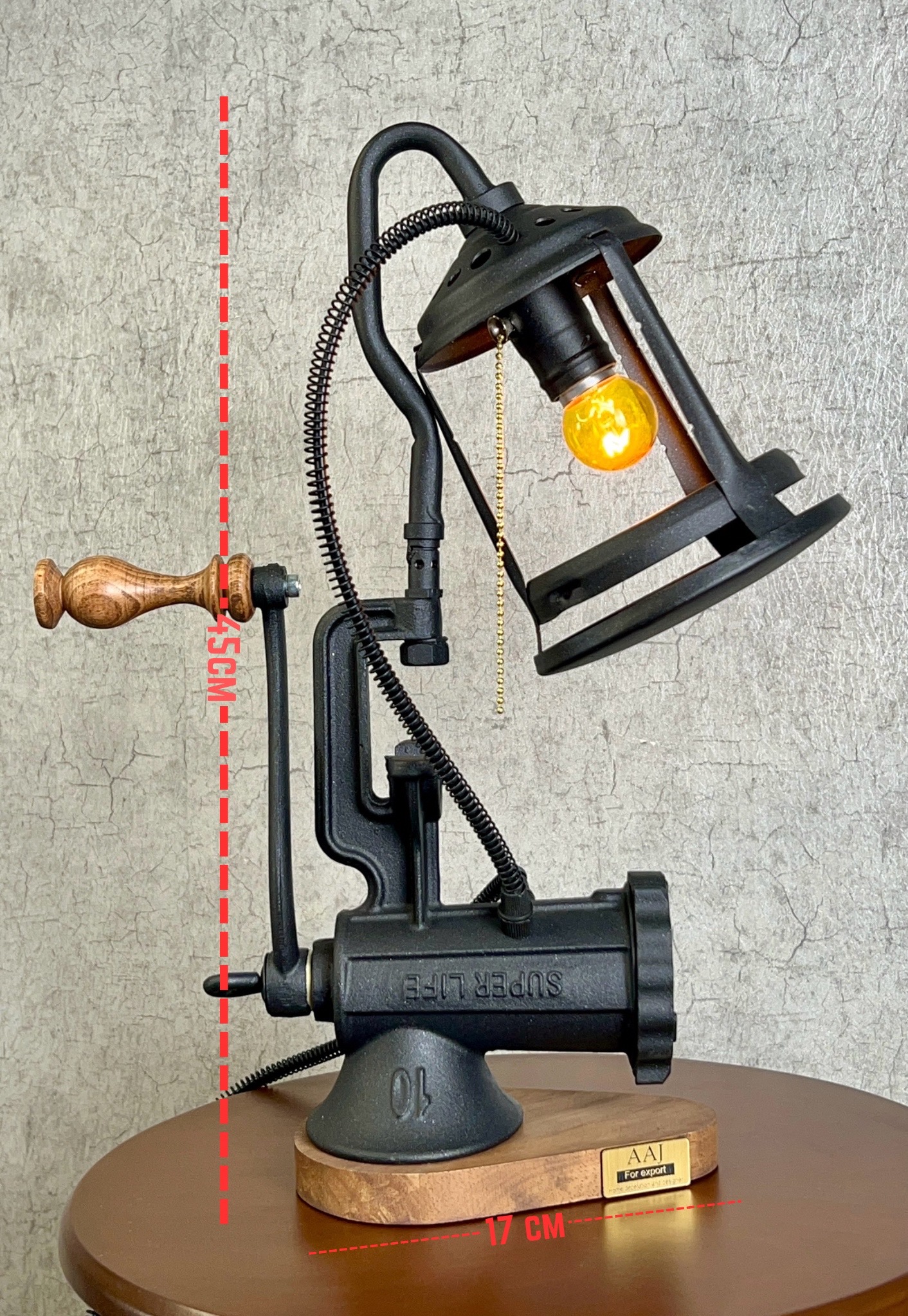 اگر به دنبال یک آباژور متفاوت و منحصربهفرد برای دکوراسیون منزل یا محل کار خود هستید، این آباژور رومیزی خاص بهترین انتخاب است. طراحی خلاقانه آن با الهام از چرخ خیاطی و چرخ گوشت قدیمی، حس نوستالژی را با سبک صنعتی و مدرن در هم آمیخته و به یک اثر هنری کاربردی تبدیل شده است.