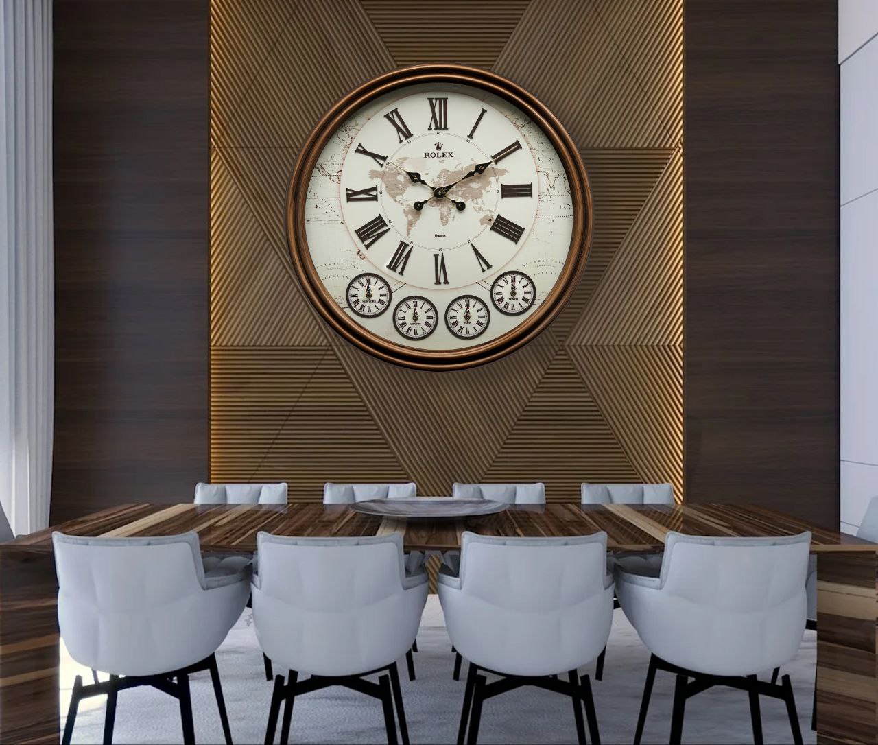 این ساعت بینظیر با طراحی کلاسیک و مکانیزم پیشرفته، نمادی از کیفیت و لوکس بودن است. بهترین انتخاب برای کسانی که به دنبال ساعتی با اعتبار و زیبایی منحصر به فرد هستند. همین حالا این شاهکار زمانسنجی را به دکوراسیون فضای خود اضافه کنید .ساعت رولکس کد 5 از جنس چوب ابزار خورده درجه یک و 5 موتور تایوانی ( 5 زمانه ) همراه 6 سال گارانتی می باشد .همچنین قطر این محصول 70 سانتی متر است .رنگ بدنه گردویی متمایل به عسلی می باشد .