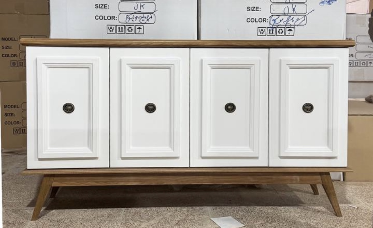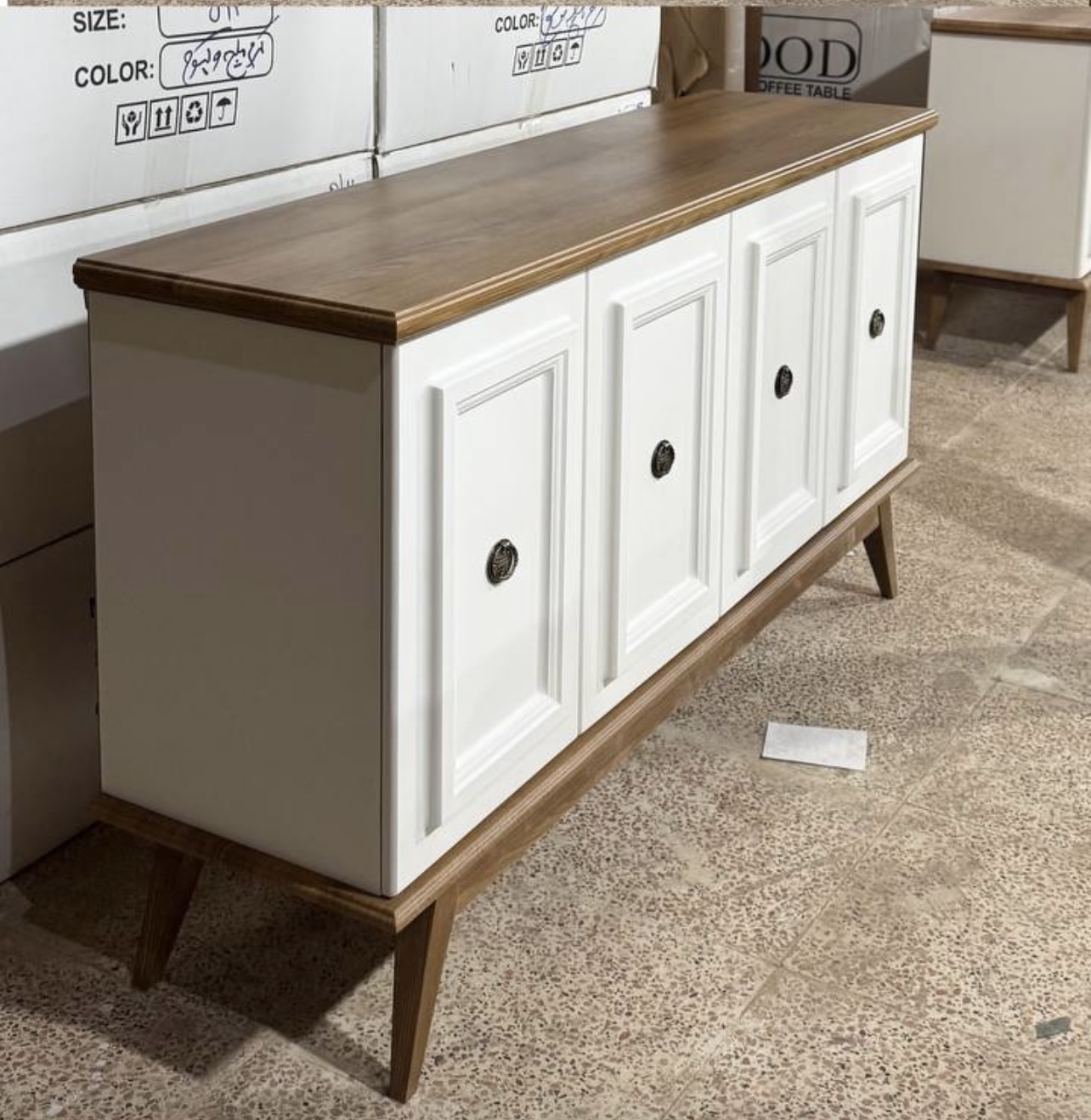 کنسول کد 82 دارای چهار درب سفید با طراحی ساده و شیک است. این دربها علاوه بر ایجاد فضای ذخیرهسازی مناسب، تضاد رنگی زیبایی با بدنه گردویی روشن ایجاد کرده و جلوهای مدرن به این محصول میبخشند.