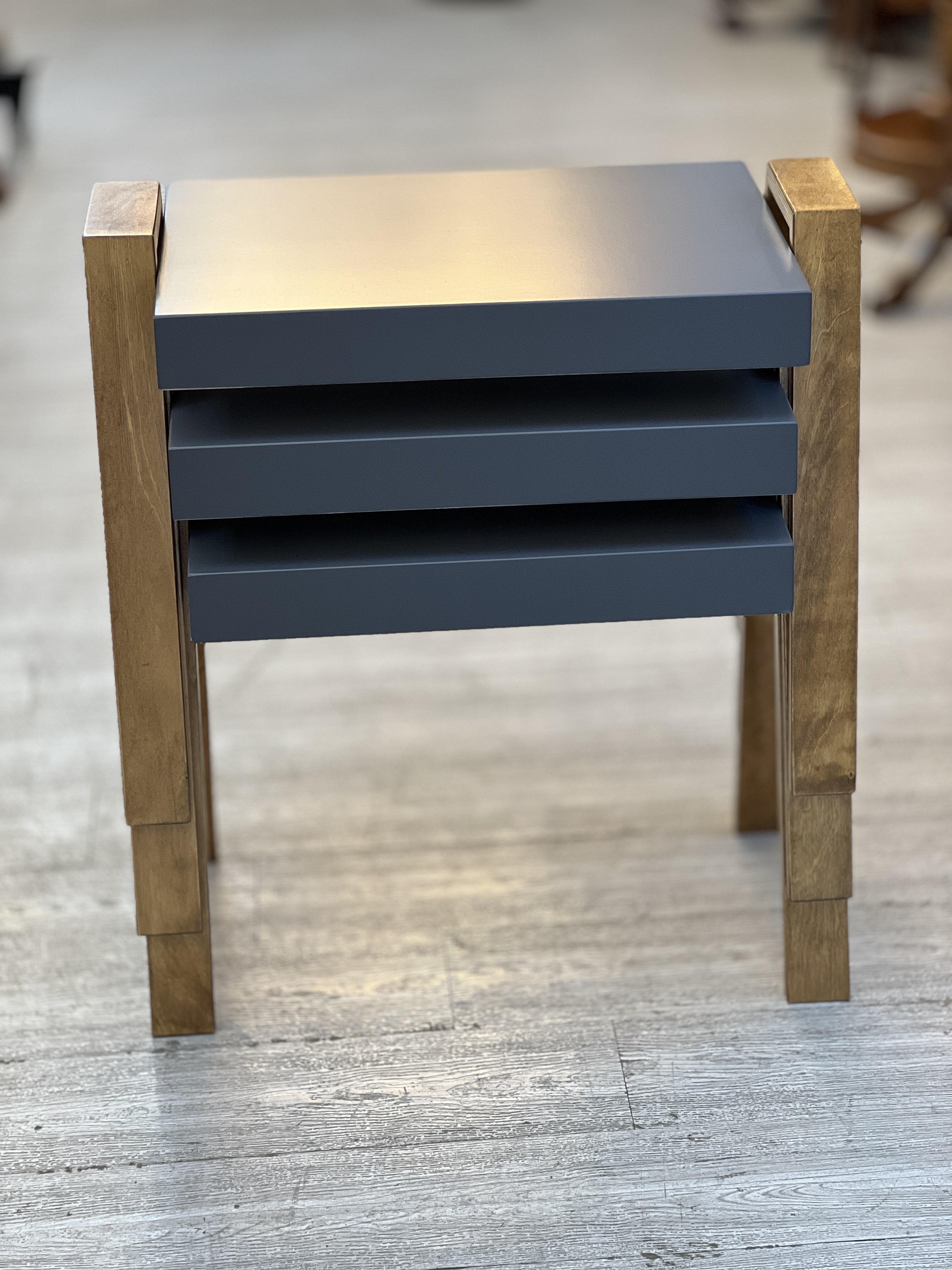 میز عسلی سه تکه مدرن | پایه چوب روس فندقی با صفحه طوسی مات